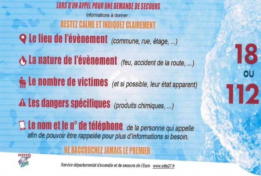 Rappel de l'attitude à avoir pour un appel pour une demande de secours